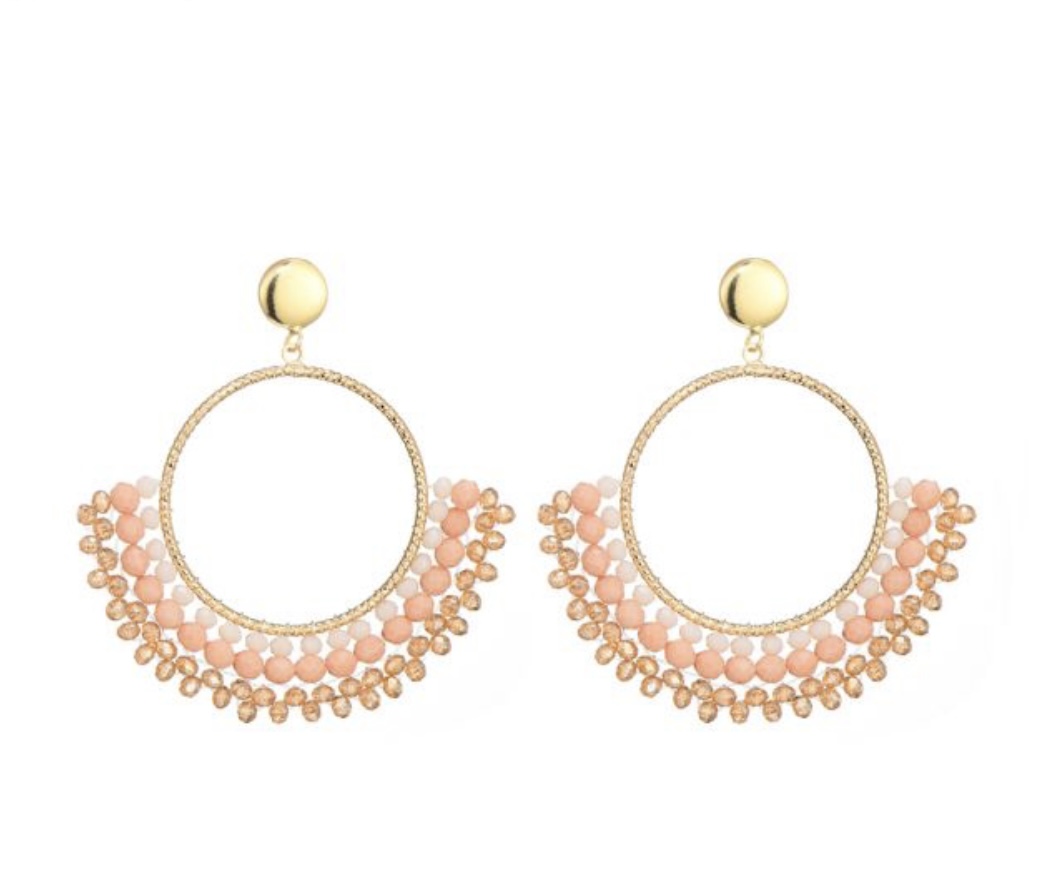 Statement piece oorbellen, roze en witte kralen